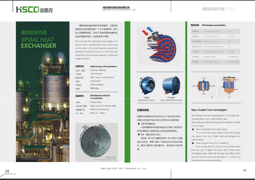 螺旋板式換熱器由兩張或四張金屬板卷制而成,板與板之間焊有定距柱,形成兩條或四條各自完全獨(dú)立的螺旋形通道。由于物料沿螺旋形通道流動(dòng),可以形成較高的湍流度,所以這種換熱器具有傳熱系數(shù)高,物料中的固形物或纖維狀懸浮物不易沉積和堵塞,自清洗能力強(qiáng)等方面的優(yōu)點(diǎn)